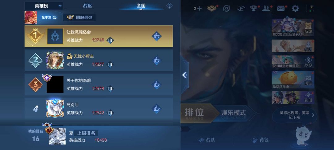 巅峰1925万名✨2月在榜国11花木兰✨高胜高评✨可排位禁巅峰✨挂机扣分打巅峰必拉黑!人品好租客来