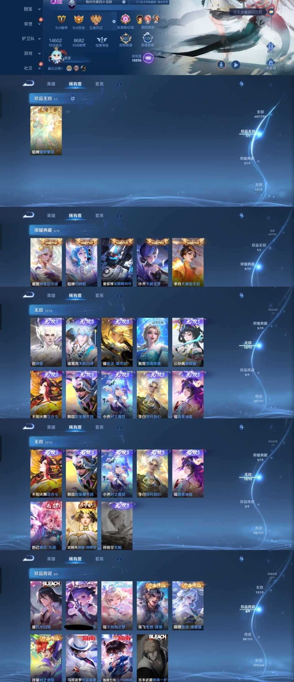 限制: 租号2次及以上 | 撤单率<49%才可租用此帐号装备描述:时间到了还登录白玩或者顶号全部改密拉黑处理永不解除,顶号机器会秒禁玩改密,顶号不仅拉黑还没得玩,赚三两块不容易,请理解谢谢。 ❤❤❤❤❤❤❤❤❤❤❤❤ 请勿开挂,挂机,送头,骂人,撤单后游戏等如有违规永久拉黑永不解除。 重置二级密码不要费劲了,号主每天都会上号查看,多行不义必自毙,人在做天在看,多做好事多自律,少做缺德事 该号英雄128个皮肤607个,珍品无双1个,典藏6个,无双12个,珍品传说8个,星传说8个,传说88个,史诗199个,祝你游戏愉快~