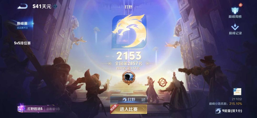 不能打巅峰赛⚡打野巅峰万强2153闪电框4000名⚡在榜省级玄策60段打野禁巅峰