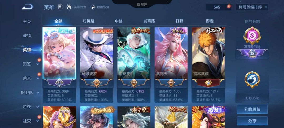 50段发育路 神罪天机白泽慕夏✨满传说皮肤满珍品五无双五个典藏五星传说