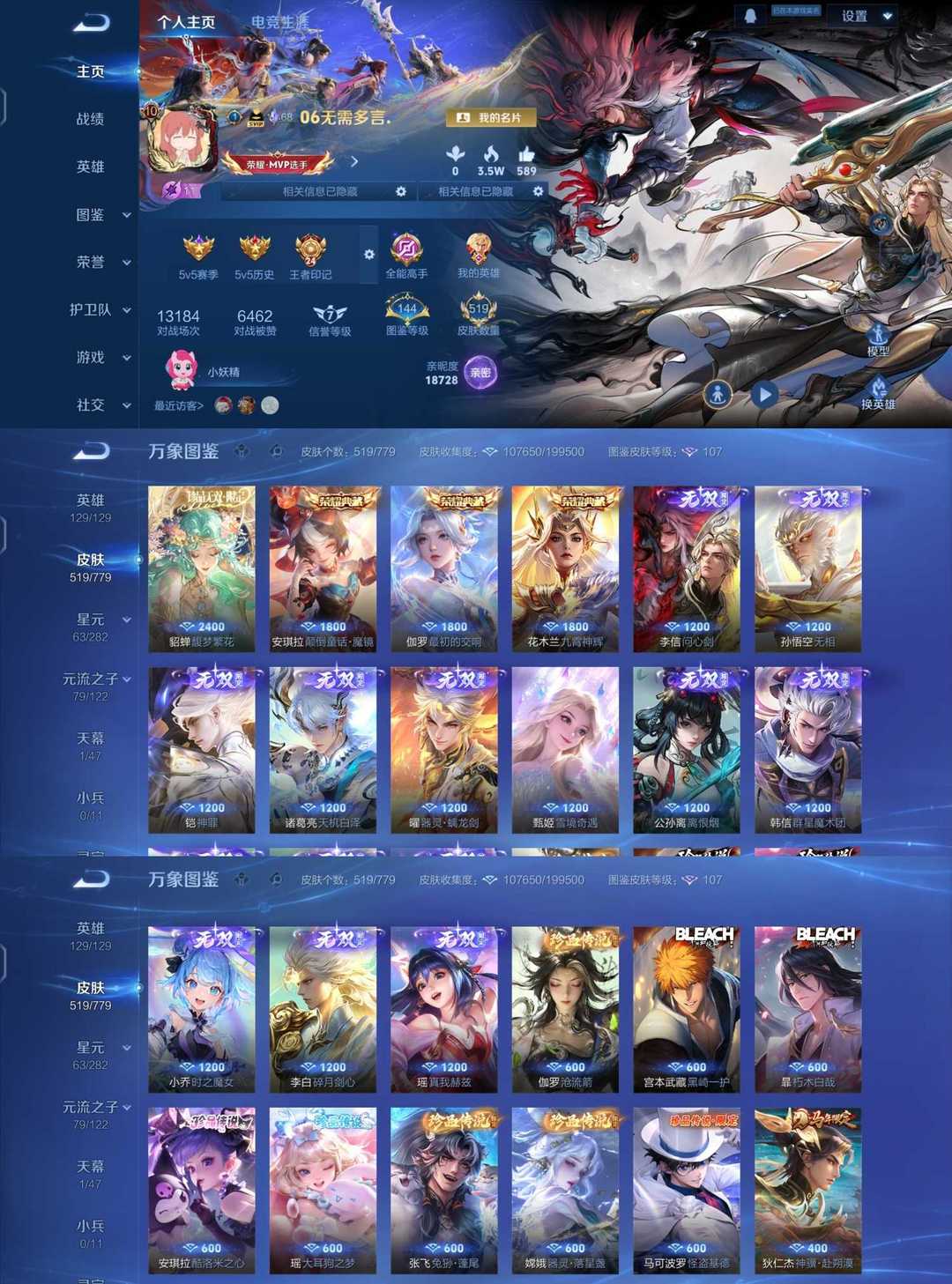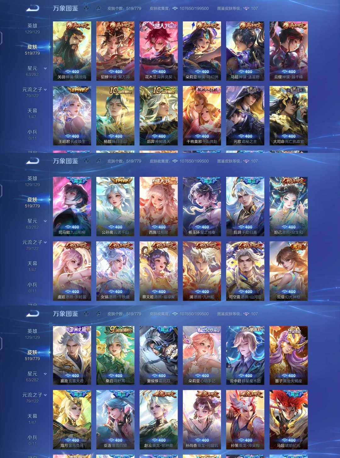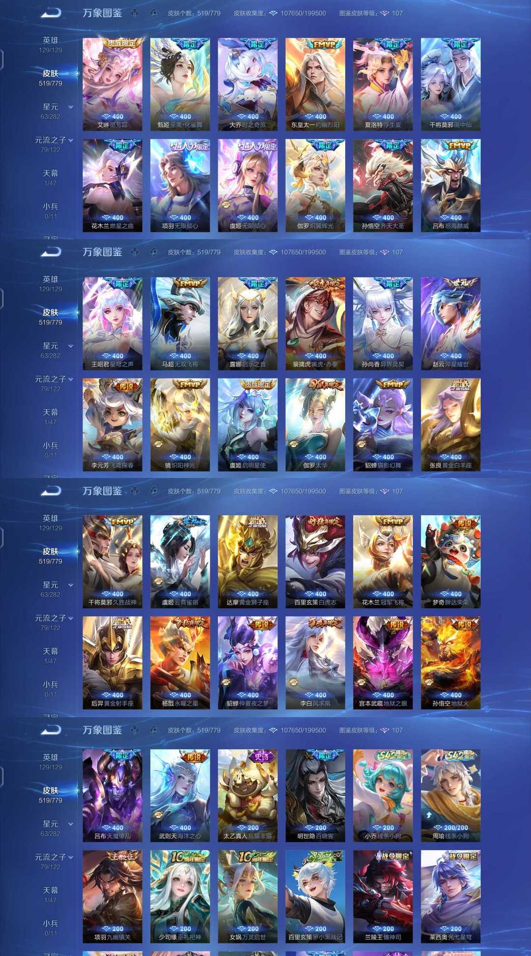 李信问心剑✨马年限定全套✨安琪拉典藏✨星君娄金✨20珍品限定78传说✨猴子韩信李白小乔甄姬无双
