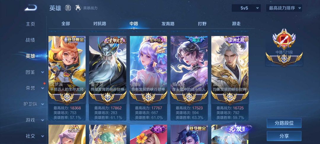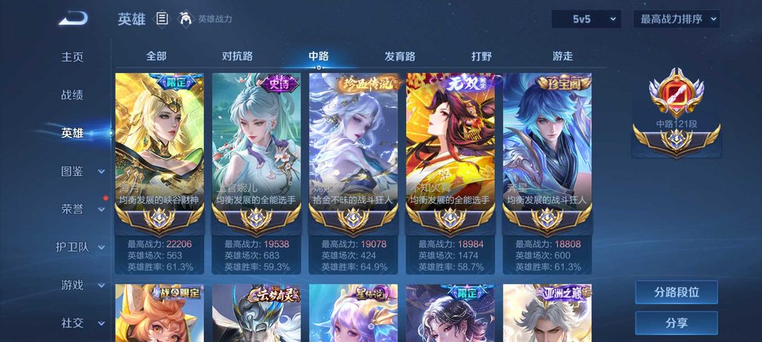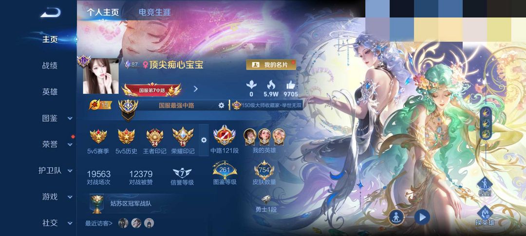 在榜国服最强121段中路✨问心剑✨马年限定✨2.2w战力海月❤️历史12大国标✨顶尖中路⚡满无双