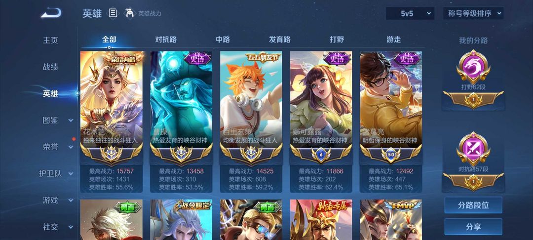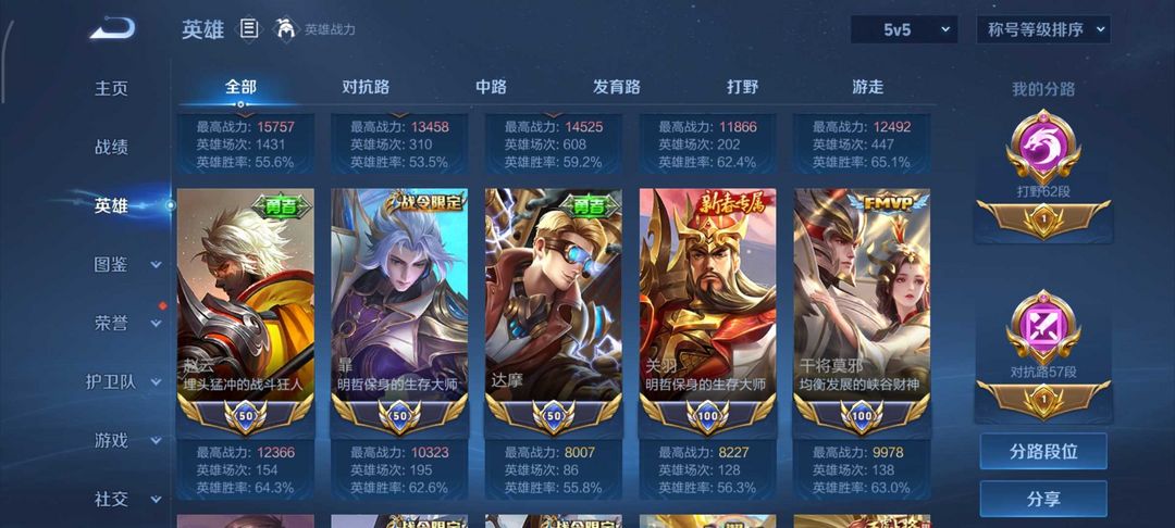 62段打野⭐52段对抗路⭐国服花木兰国服曹操国服玄策