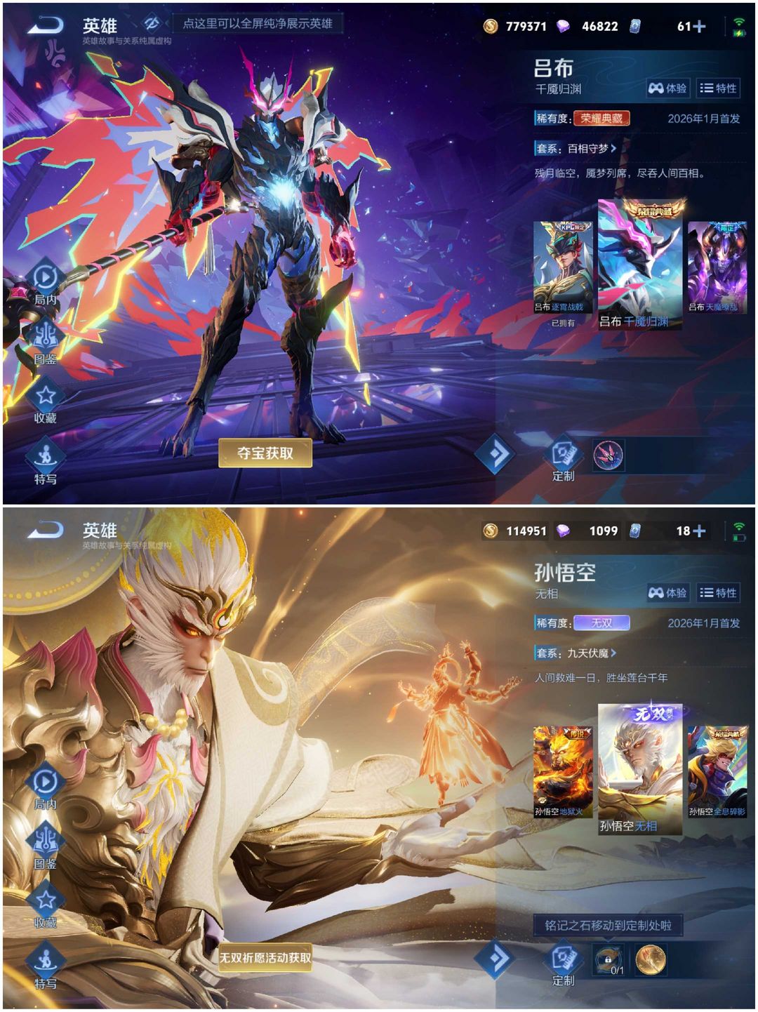 753皮〖吕布典藏❤猴子无双〗不禁言女号《新皮全有》满无双✨满珍品✨满传说✨满小兵✨满按键✨满播报