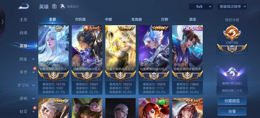 三月6个在榜省标露娜曜澜孙悟空马超镜❤️巅峰历1w6战力国服镜马超露娜孙悟空曜国标澜马年限定