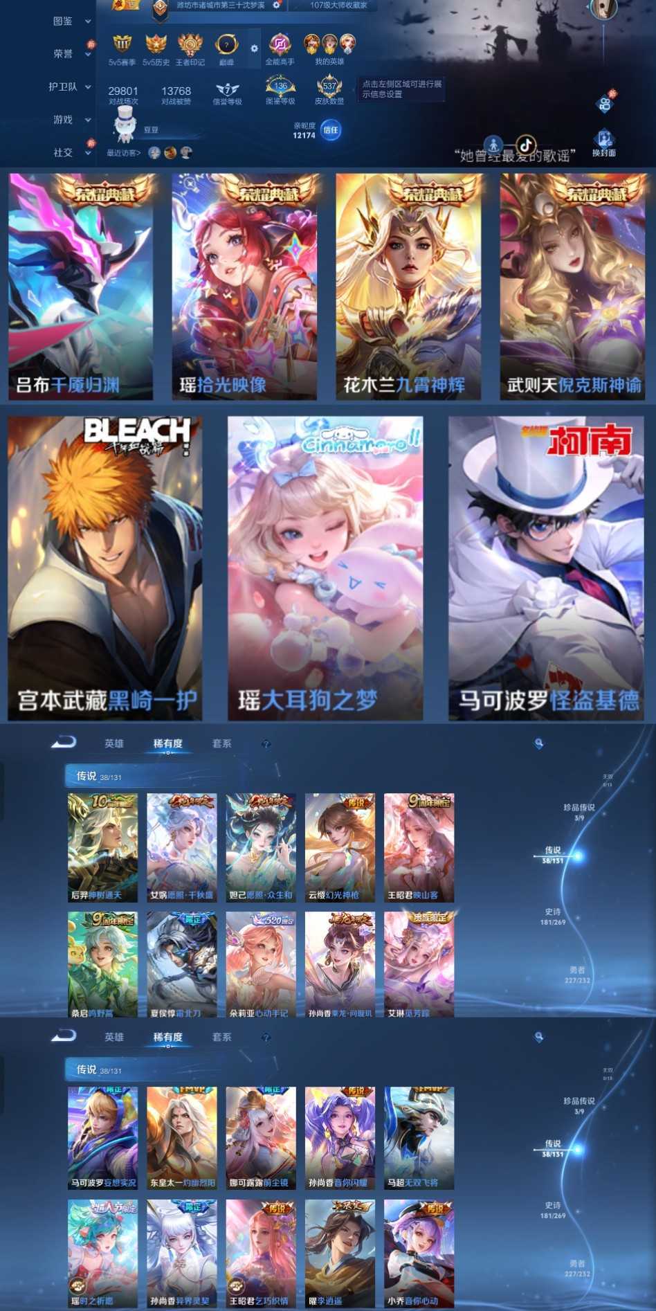 限制: 租号2次及以上 | 撤单率<49%才可租用此帐号装备描述:时间到了还登录白玩或者顶号全部改密拉黑处理永不解除,顶号机器会秒禁玩改密,顶号不仅拉黑还没得玩,赚三两块不容易,请理解谢谢。 ❤❤❤❤❤❤❤❤❤❤❤❤❤❤❤ 请勿开挂,挂机,送头,骂人,撤单后游戏等如有违规永久拉黑永不解除。 重置二级密码不要费劲了,号主每天都会上号查看,多行不义必自毙,人在做天在看,多做好事多自律,少做缺德事。 该号英雄129个皮肤537个,典藏5个,珍品传说3个,星传说6个,传说38个,史诗181个,祝你游戏愉快~