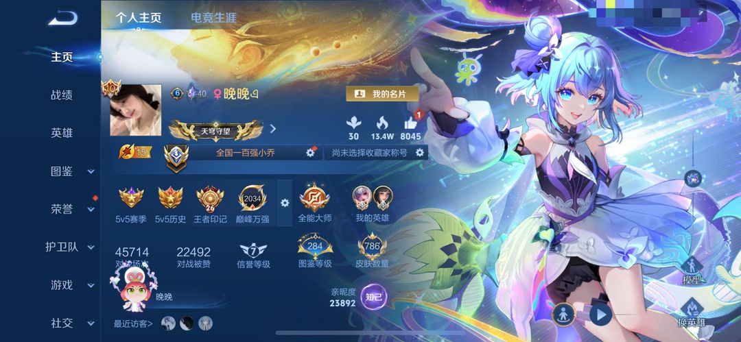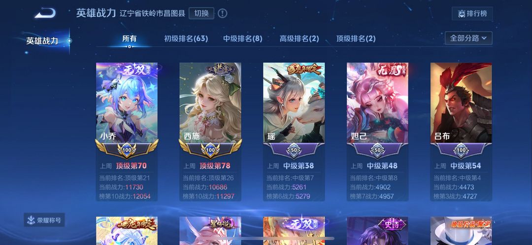 在榜小国西施小乔❤禁巅峰万强2034❤荣耀V10不禁言786皮❤满按键满水晶满无双17星元❤可排