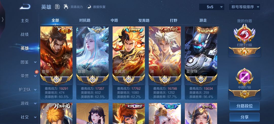 在榜111段国服打野⚡21大国服1.8万战老虎镜⚡大国服澜露娜马超矅曹操宫本⚡历史2668分巅峰第一
