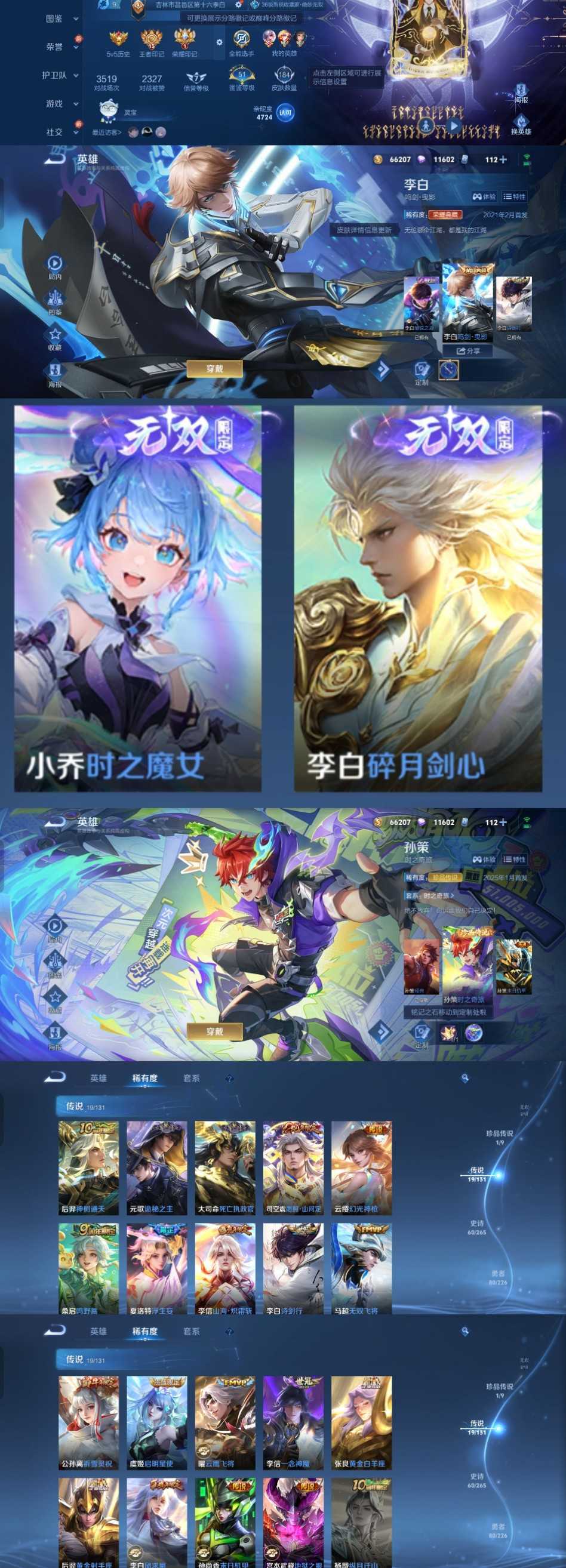 限制: 租号1次及以上 | 撤单率<49%才可租用此帐号装备描述:时间到了还登录白玩或者顶号全部改密拉黑处理永不解除,顶号机器会秒禁玩改密,顶号不仅拉黑还没得玩,赚三两块不容易,请理解谢谢。 ❤❤❤❤❤❤❤❤❤❤❤❤❤❤❤ 请勿开挂,挂机,送头,骂人,撤单后游戏等如有违规永久拉黑永不解除。 重置二级密码不要费劲了,号主每天都会上号查看,多行不义必自毙,人在做天在看,多做好事多自律,少做缺德事。 该号英雄122皮肤424个,典藏2个,星传说2个,传说28个,史诗139个,祝你游戏愉快~