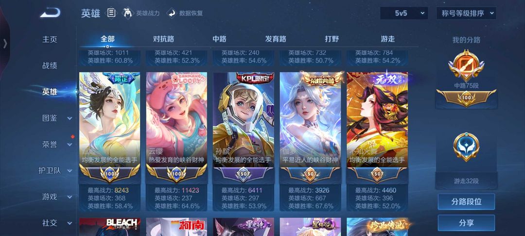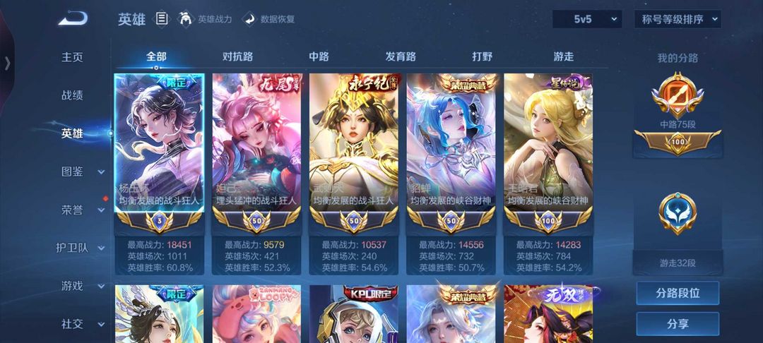 7国服✨75段中路 国服甄姬 妲己 武则天 貂蝉✨满典藏✨满无双✨满星传说✨猴子无双✨满细节