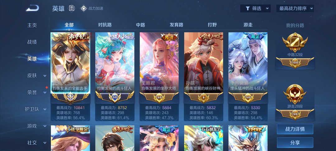 V10⭐11月在榜省标瑶 孙膑⭐54传说⭐56摁健⭐历史国服武则天 国服瑶 甜妹号