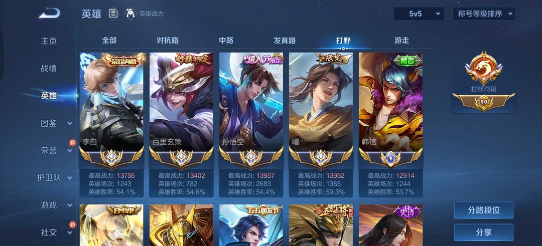 三月在榜小国服镜❤️巅峰2100❤️国服猴子国服李白国服耀国服玄策73段打野❤️可排位禁巅峰
