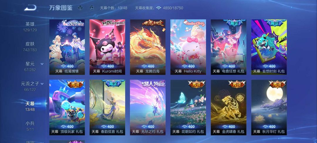 新皮补✨740皮肤✨无双贵族V10✨5小兵✨满无双满珍品缺✨小国蔡文姬✨ 省金标瑶西施多漂亮标可戴✨