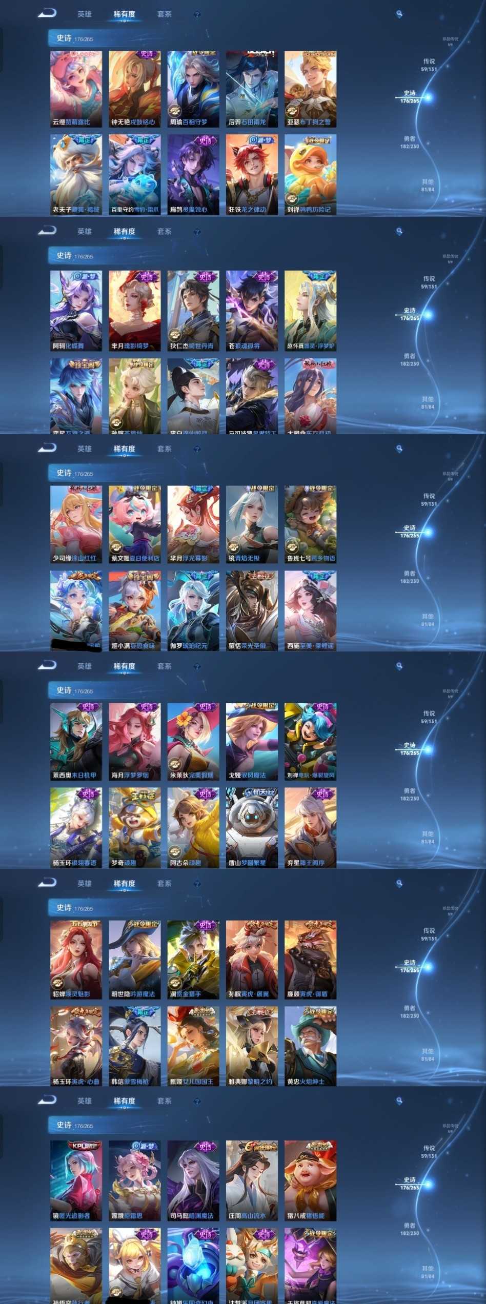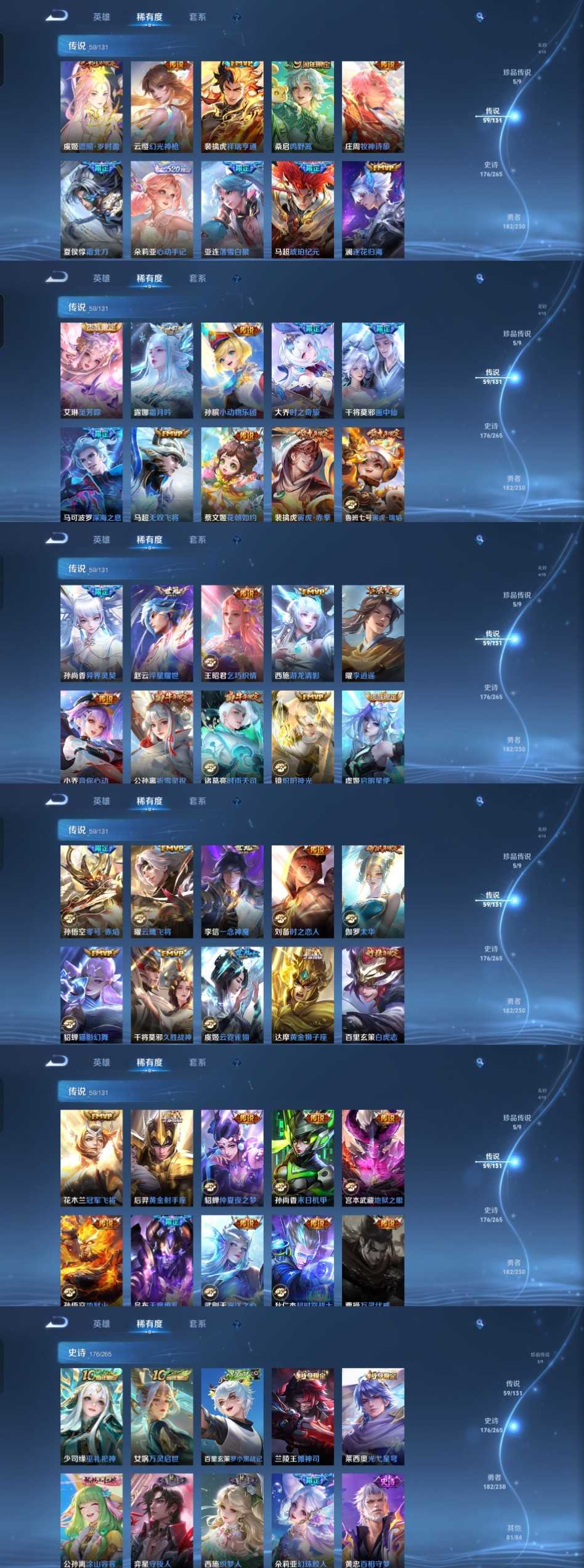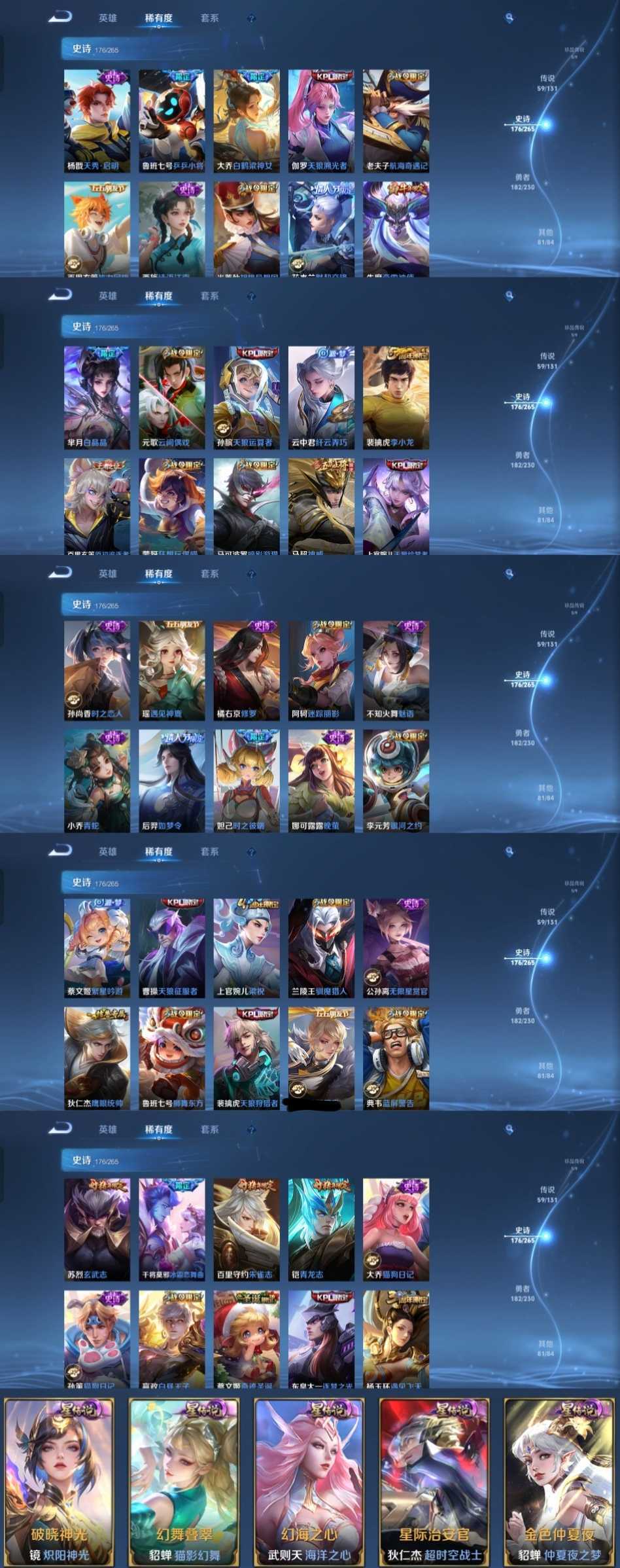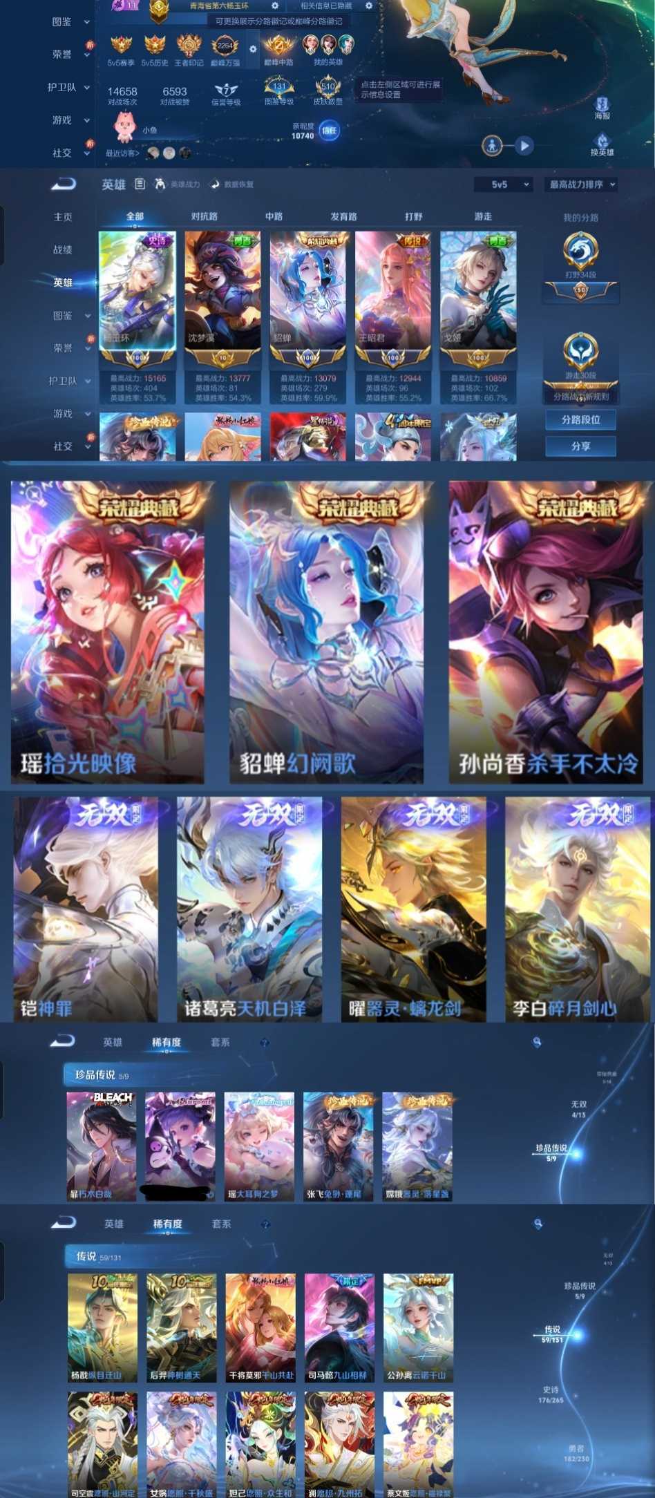 限制: 租号2次及以上 | 撤单率<49%才可租用此帐号装备描述:时间到了还登录白玩或者顶号全部改密拉黑处理永不解除,顶号机器会秒禁玩改密,顶号不仅拉黑还没得玩,赚三两块不容易,请理解谢谢。 ❤❤❤❤❤❤❤❤❤❤❤❤❤❤❤❤❤❤❤ 请勿开挂,挂机,送头,骂人,撤单后游戏等如有违规永久拉黑永不解除。 重置二级密码不要费劲了,号主每天都会上号查看,多行不义必自毙,人在做天在看,多做好事多自律,少做缺德事。 该号英雄128个皮肤510个,典藏4个,无双4个,珍品传说5个,星传说5个,传说59个,史诗176个,祝您游戏愉快~