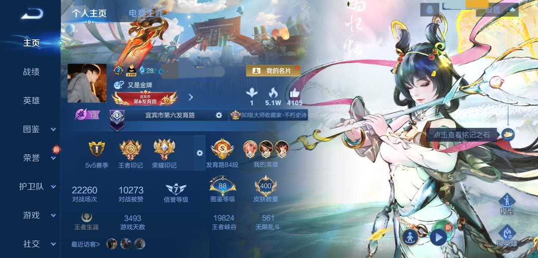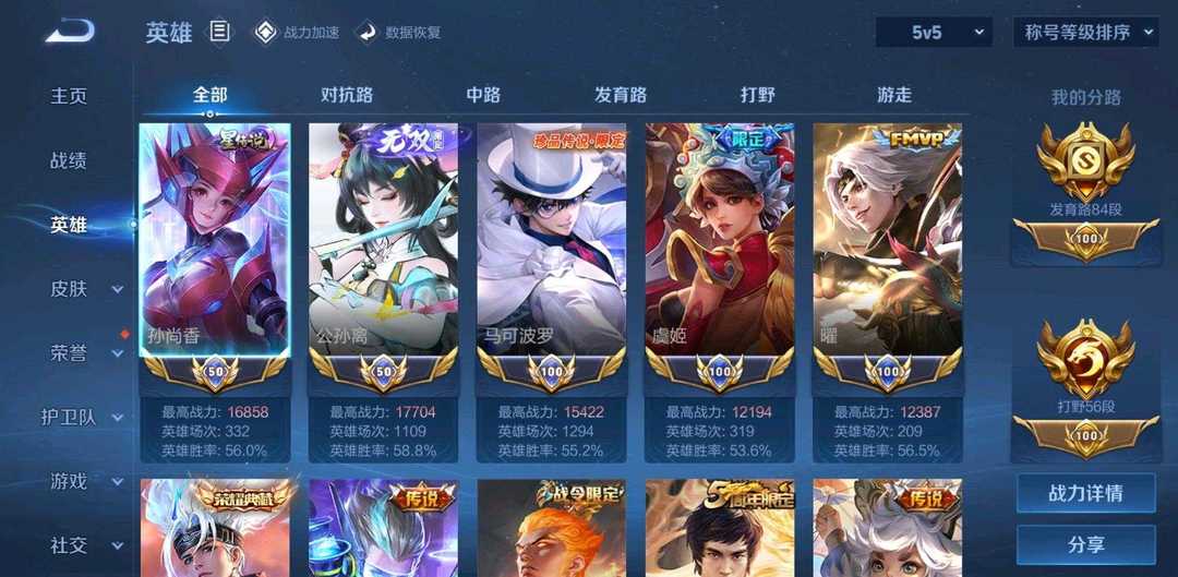 84段发育路❤️历史5热门小国服马克✨公孙离✨孙尚香❤️优质射手皮肤2水晶1无双3珍品