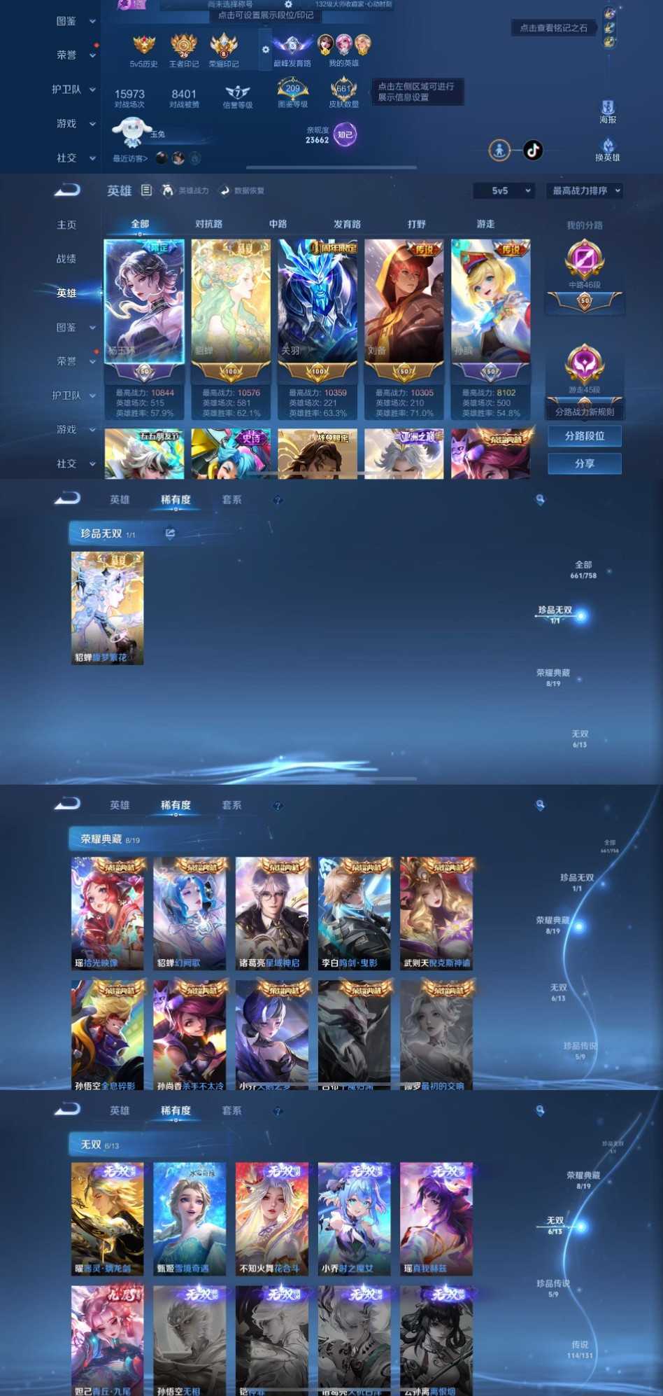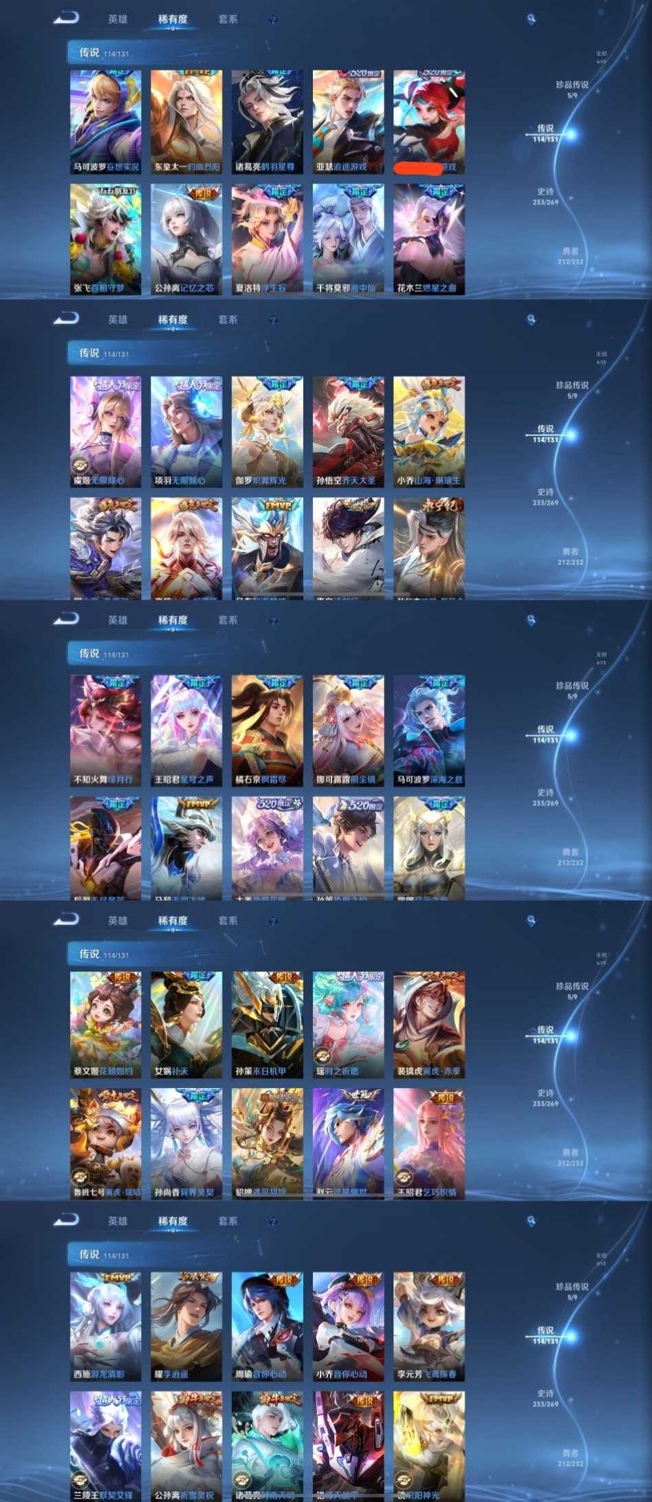 限制: 租号1次及以上 | 撤单率<49%才可租用此帐号装备描述:时间到了还登录白玩或者顶号全部改密拉黑处理永不解除,顶号机器会秒禁玩改密,顶号不仅拉黑还没得玩,赚三两块不容易,请理解谢谢。 ❤❤❤❤❤❤❤❤❤❤❤❤❤❤❤❤❤❤❤ 请勿开挂,挂机,送头,骂人,撤单后游戏等如有违规永久拉黑永不解除。 重置二级密码不要费劲了,号主每天都会上号查看,多行不义必自毙,人在做天在看,多做好事多自律,少做缺德事。 该号英雄129个皮肤661个,珍品无双1个,典藏9个,无双6个,珍品传说5个,星传说6个,传说114个,史诗233个,祝您游戏愉快~