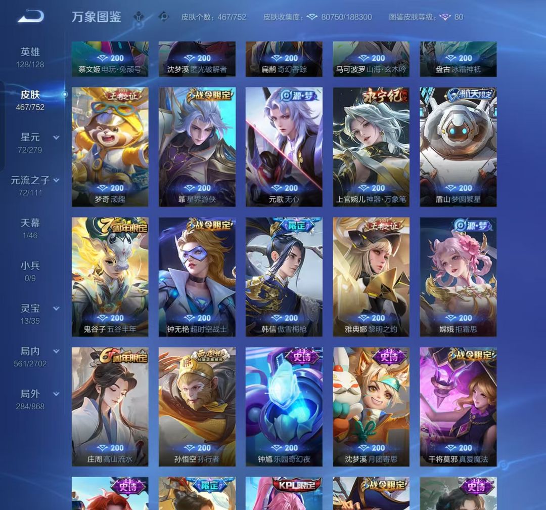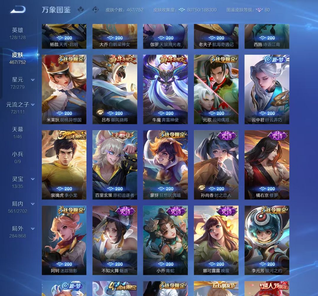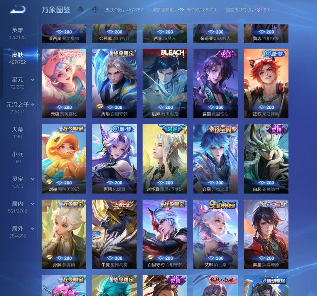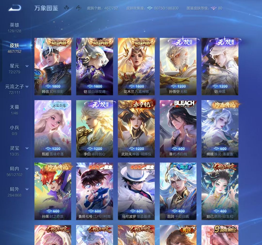 1折包天❤v10 467皮❤弑枪猎影❤银白咏叹调❤九霄神辉❤无相❤神罪❤碎月剑心❤基德柯南❤蛇年限定