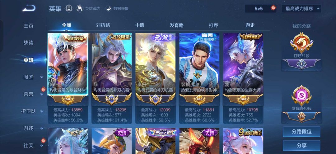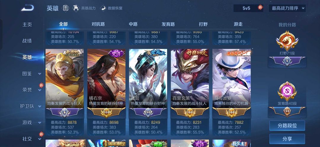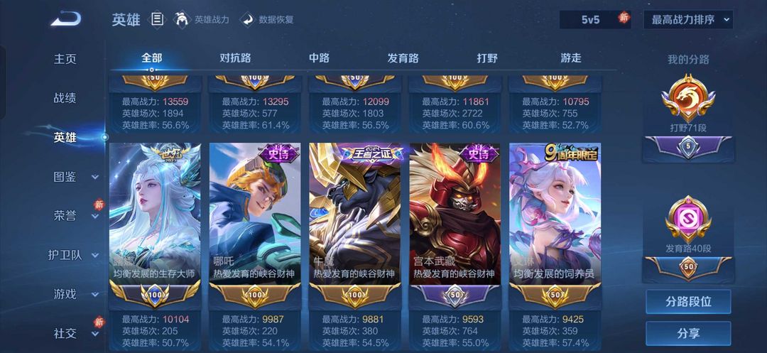 v10 ✨70段打野✨小国扉✨小国露娜✨小国李白✨多个金标,万战✨美神降临称号 哎呦