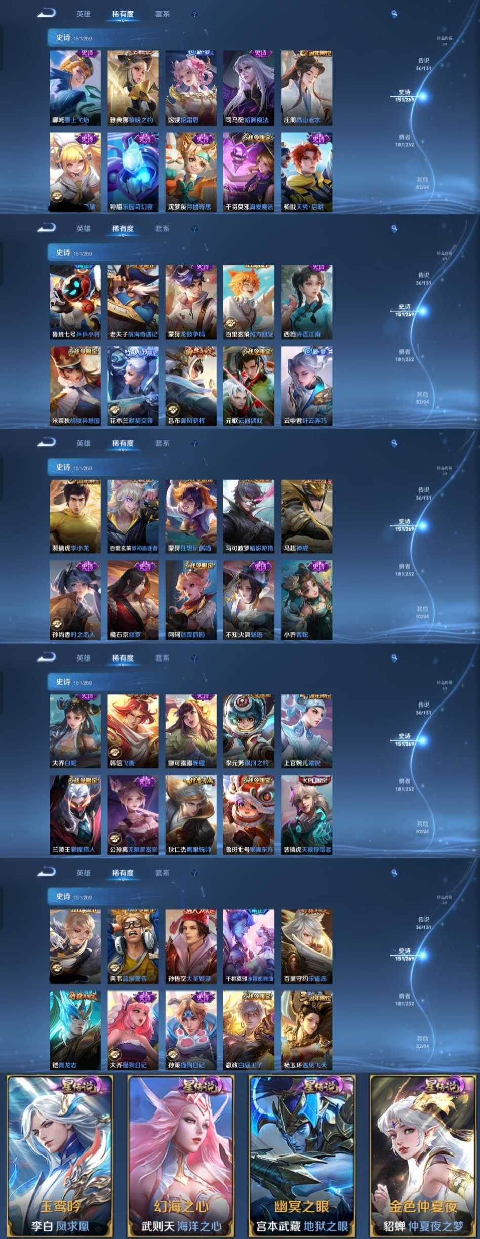 限制: 租号1次及以上 | 撤单率<49%才可租用此帐号装备描述:时间到了还登录白玩或者顶号全部改密拉黑处理永不解除,顶号机器会秒禁玩改密,顶号不仅拉黑还没得玩,赚三两块不容易,请理解谢谢。 ❤❤❤❤❤❤❤❤❤❤❤❤❤❤❤ 请勿开挂,挂机,送头,骂人,撤单后游戏等如有违规永久拉黑永不解除。 重置二级密码不要费劲了,号主每天都会上号查看,多行不义必自毙,人在做天在看,多做好事多自律,少做缺德事。 该号英雄128个皮肤460个,典藏3个,无双5个,珍品传说2个,星传说4个,传说37个,史诗150个,祝你游戏愉快~