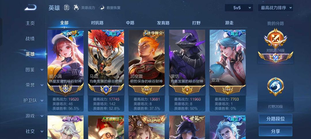 无双贵族V10⭐正式服1.95w战力大国服姬小满⭐数字标1.77w战力马超⭐高胜率高评分 极品带妹号