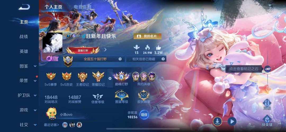 年限已补⭐126段巅峰最强打野♥️历史镜虎露娜马超9国服⭐高胜率评分♥️可排禁巅峰