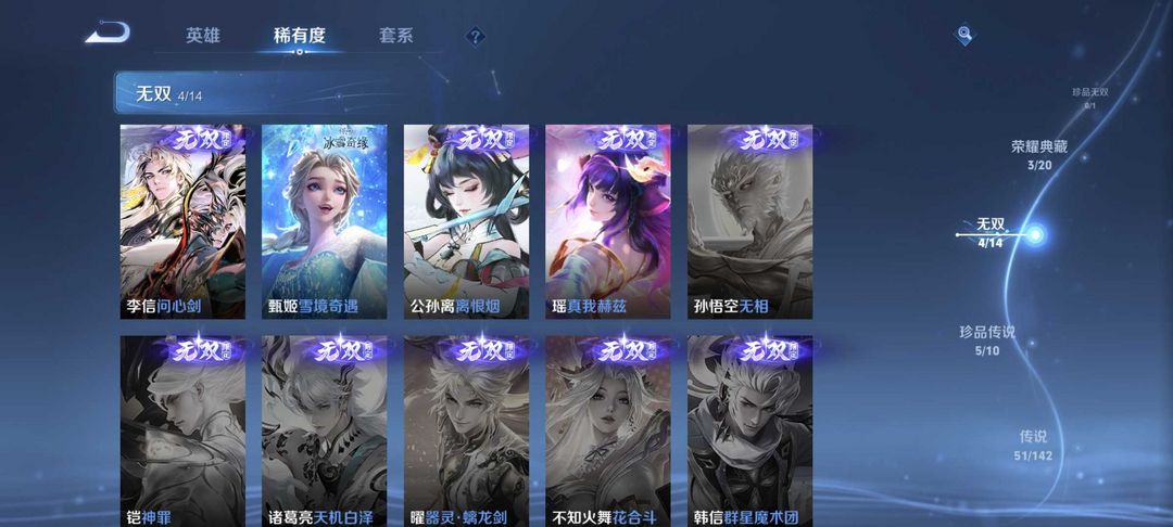 4典藏⚡6无双⚡李信无双⚡满马年限⚡安琪拉典藏⚡5珍品⚡伽罗珍品⚡60传说皮
