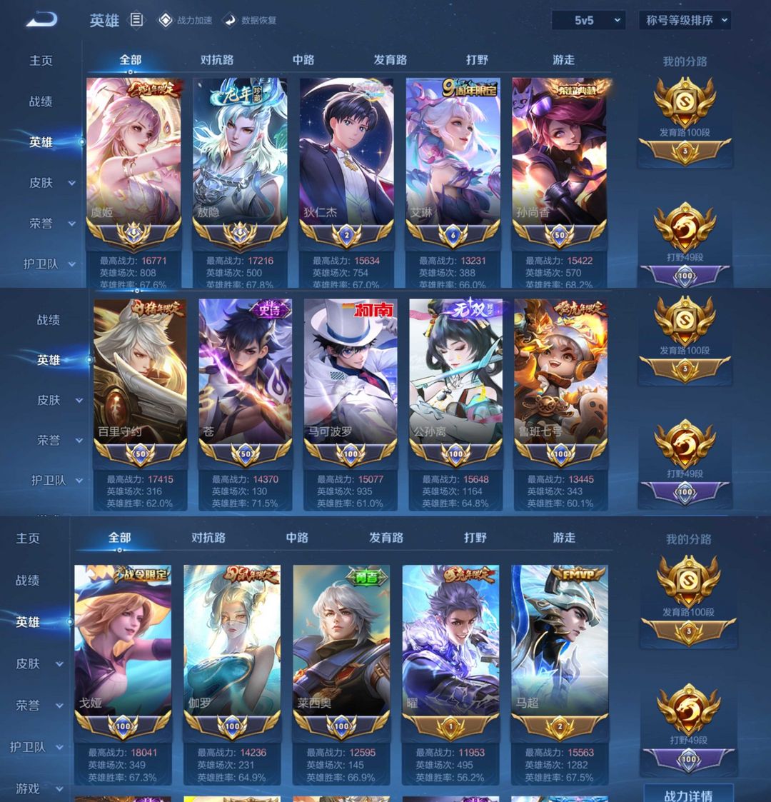 男神百段发育路❤️历史2大国标国服敖隐✨虞姬❤️11热门小国标❤️3水1无双1珍品✨年限皮肤多