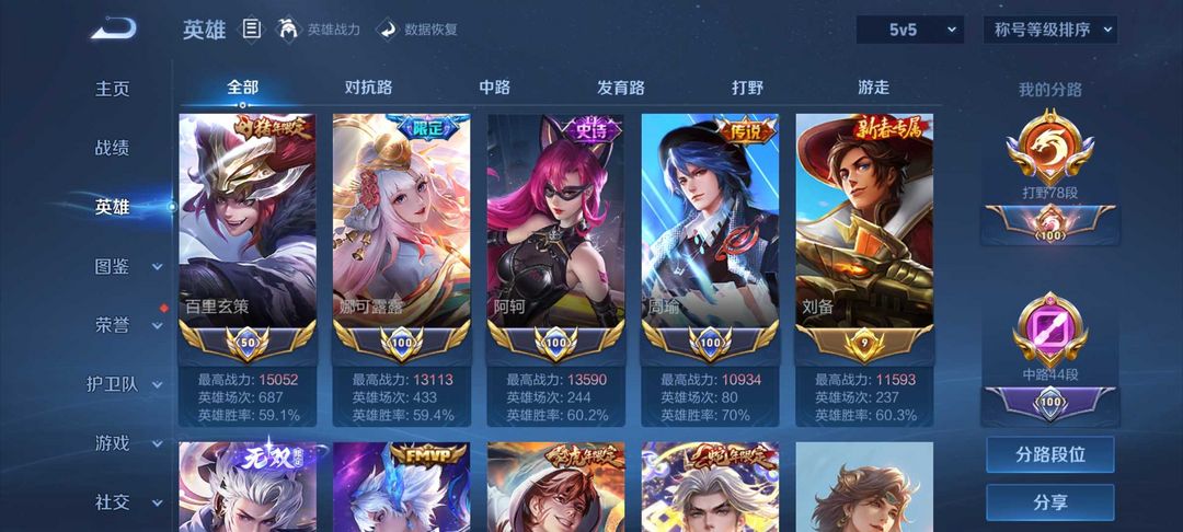 78段打野三国服打野⭐56传说离恨烟花合斗多热门限定✨李白诸葛典藏韩信无双全能大师无禁言
