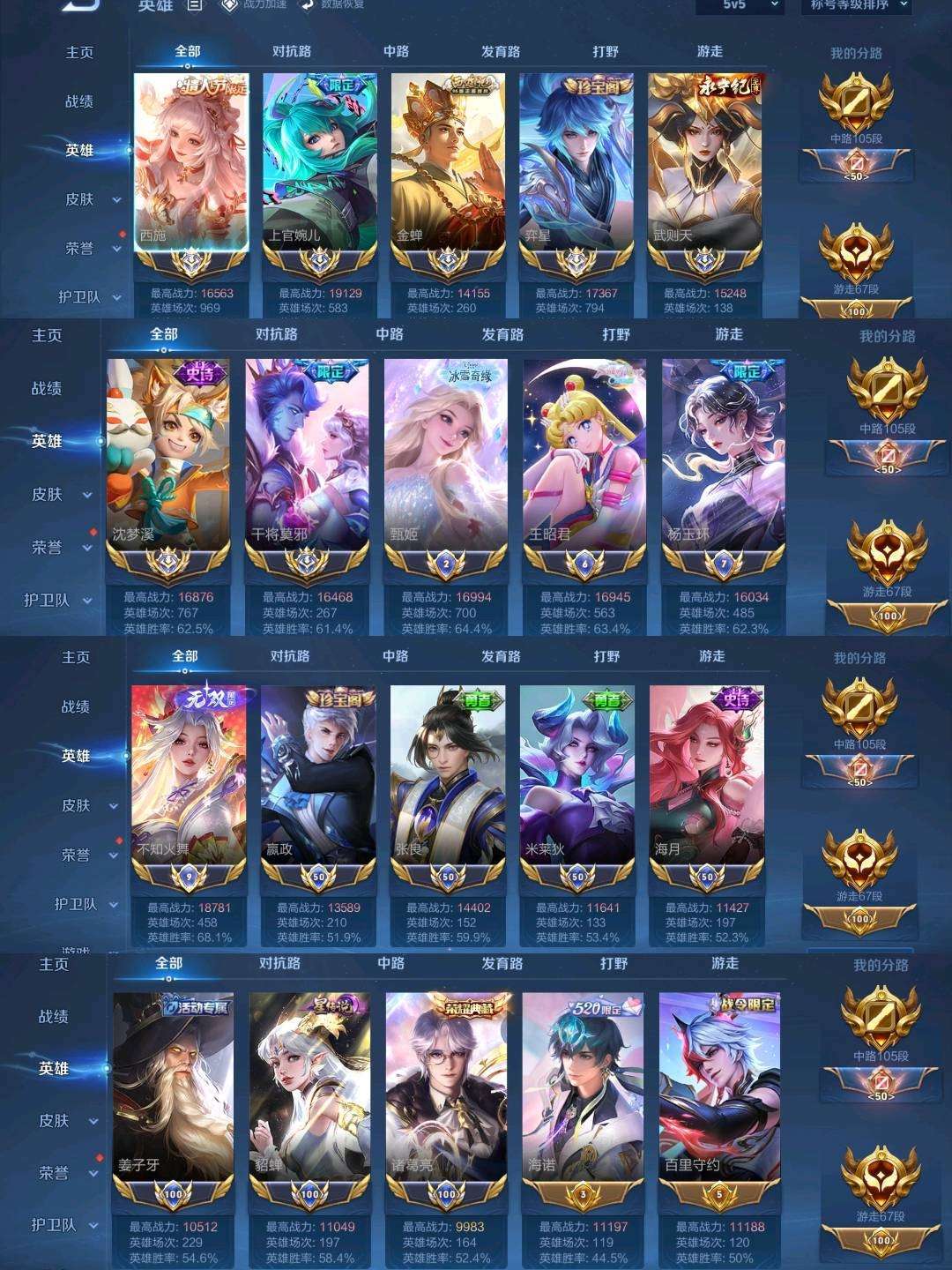国服百段中路❤️历史7大国标❤️14小国标❤️8水晶✨8无双✨4珍品