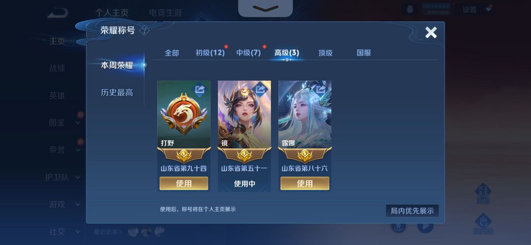 巅峰万强小魔方已点亮*本周在榜省露娜镜⚡️历史④小国标82段打野*打野推荐号禁打巅峰可排位