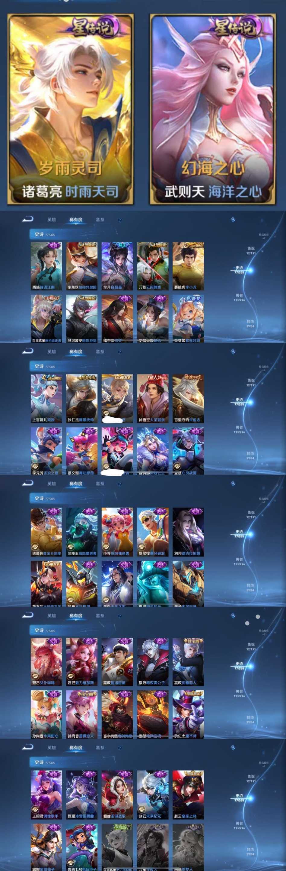 限制: 租号2次及以上 | 撤单率<49%才可租用此帐号装备描述:时间到了还登录白玩或者顶号全部改密拉黑处理永不解除,顶号机器会秒禁玩改密,顶号不仅拉黑还没得玩,赚三两块不容易,请理解谢谢。 ❤❤❤❤❤❤❤❤❤❤❤❤❤❤❤❤❤❤ 请勿开挂,挂机,送头,骂人,撤单后游戏等如有违规永久拉黑永不解除。 重置二级密码不要费劲了,号主每天都会上号查看,多行不义必自毙,人在做天在看,多做好事多自律,少做缺德事。 该号英雄128个皮肤259个,珍品无双1个,典藏3个,无双1个,珍品传说4个,星传说2个,传说12个,史诗77个,祝你游戏愉快
