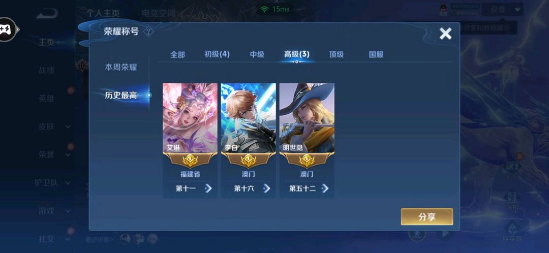 游戏区服:王者荣耀-QQ安卓-QQ账号