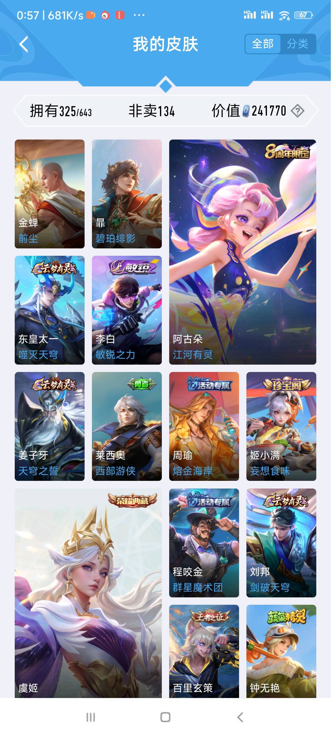 虐菜号/炸鱼小号 V10 2典藏 326皮 冰锋战神/街头霸王/纯白花嫁/至尊宝/杀手不太冷/真爱至