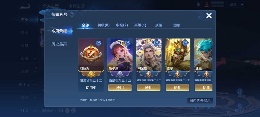 游戏区服:王者荣耀-QQ安卓-QQ账号