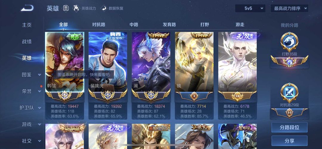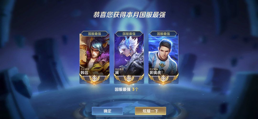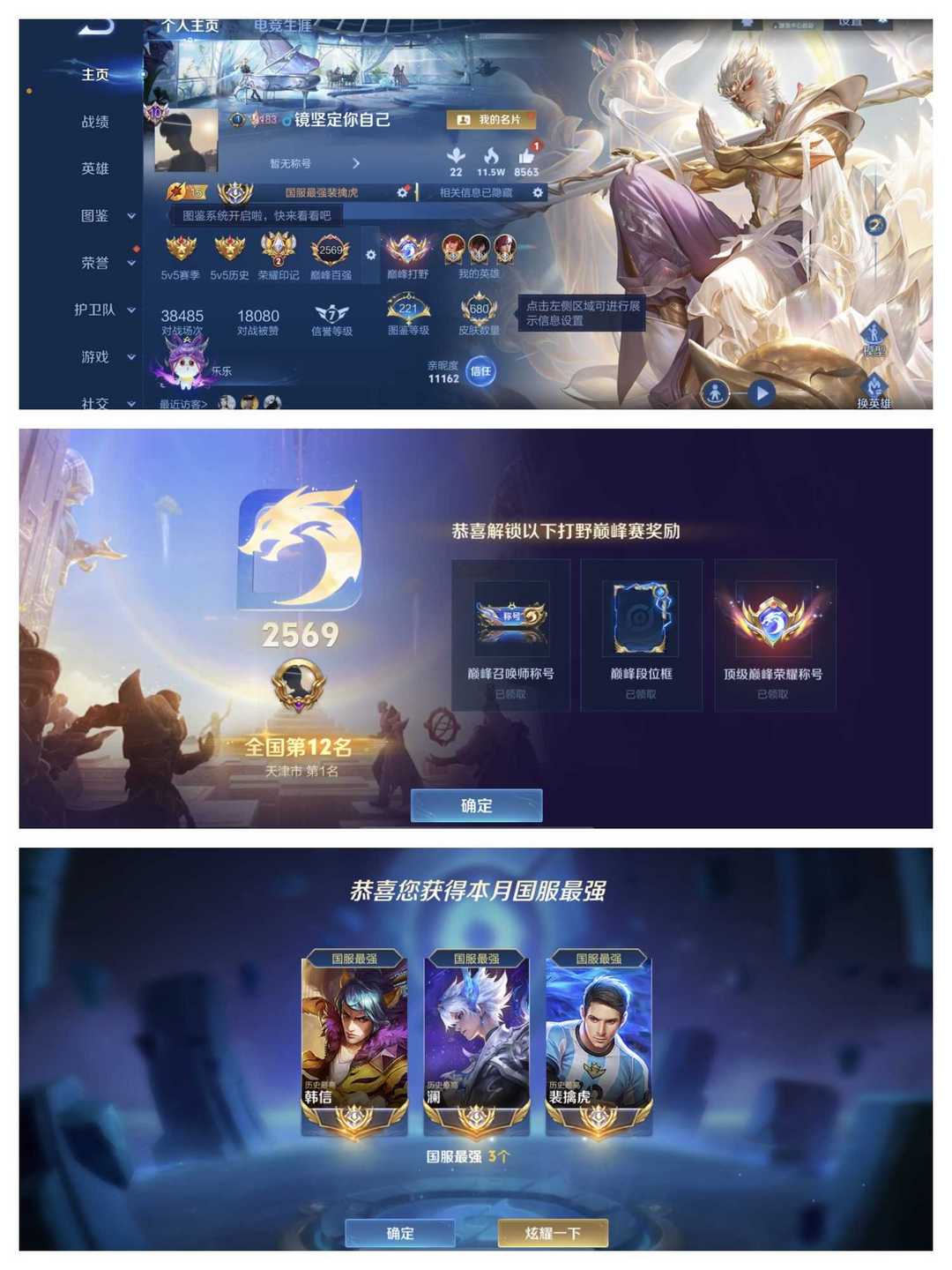 1月份正式服 三国服在榜国标 大国服裴擒虎 澜 韩信 1.9万战力 无人敛100%上号 可以排位