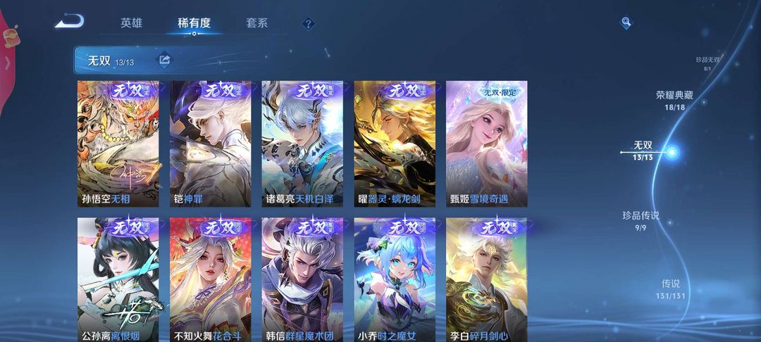 无双 v10 在榜灵宝孙悟空无相历史国服云缨巅峰万强✨满典藏满珍品满无双✨怪盗基德离恨烟✨女号