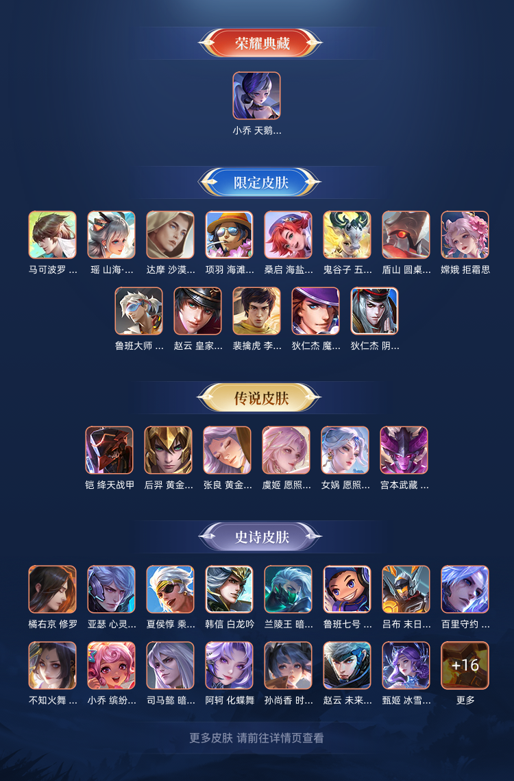 富婆女号 228皮肤1典藏2愿照 天鹅之梦 愿照千秋盛 愿照岁时盈 乞巧织情 黄金白羊座 石田雨龙
