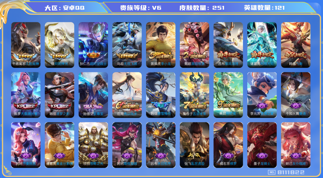游戏区服:王者荣耀-QQ安卓-QQ账号