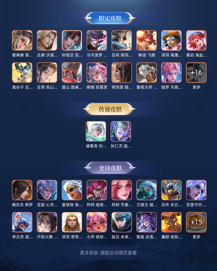 装备描述::孙尚香蔷薇恋人,高渐离玩趣恶龙,狂铁特工战影 【传说皮肤】:狄仁杰超时空战士,干将莫邪久胜战神,镜炽阳神光,诸葛亮时雨天司,马超无双飞将,桑启鸣野蒿 【限定\\\\\\\"
