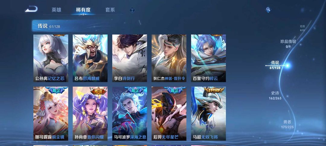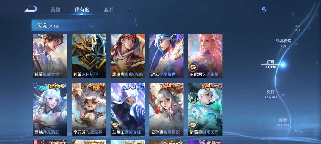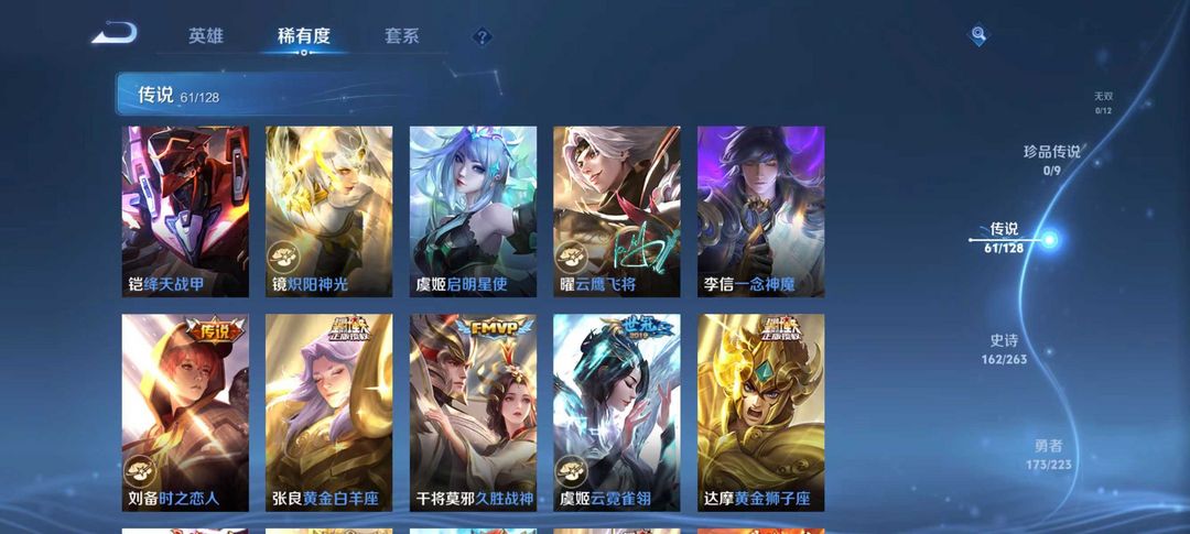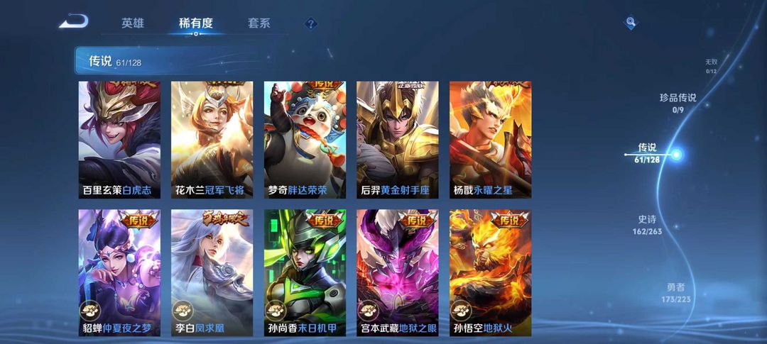 贵族v10⚡1个省标⚡6典藏⚡61传说⚡162史诗⚡包天便宜⚡优质皮肤号