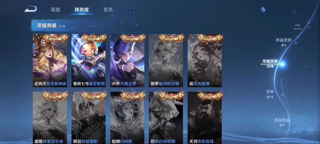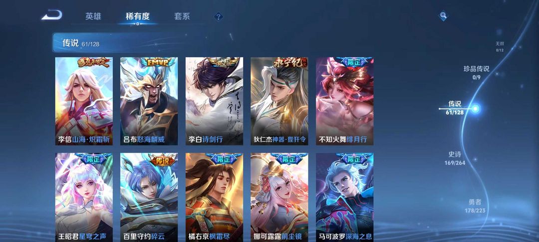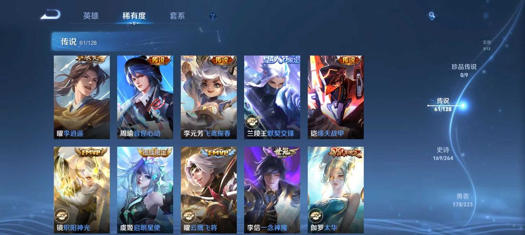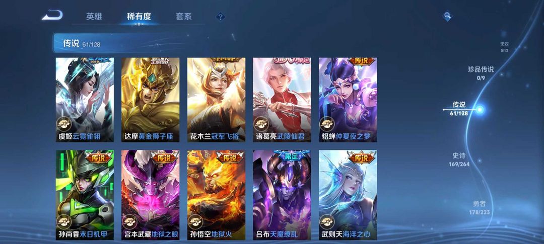 贵族v10⚡典藏3⚡传说⚡史诗169⚡包天便宜⚡优质皮肤号