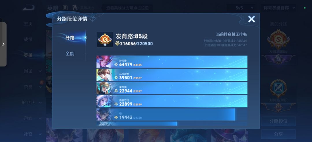 85段发育路 国服莱西奥 省标百里守约 省标敖隐 省标孙尚香