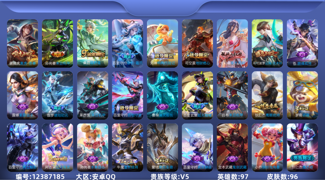 游戏区服:王者荣耀-QQ安卓-QQ账号