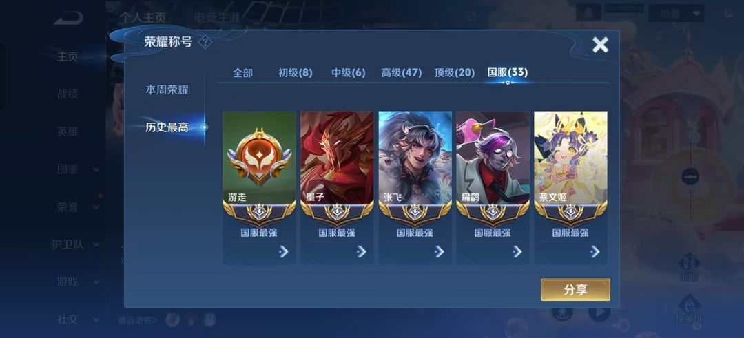 十二月在榜国服游走❤️极品历史33个大国标女号❤️国服瑶国服大乔国服朵利亚❤️信誉分够即可巅峰!