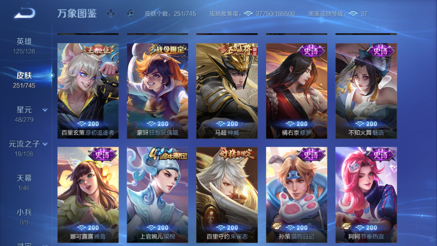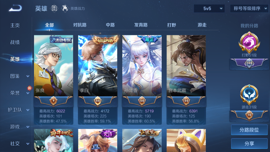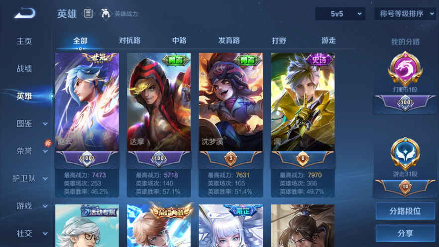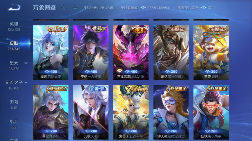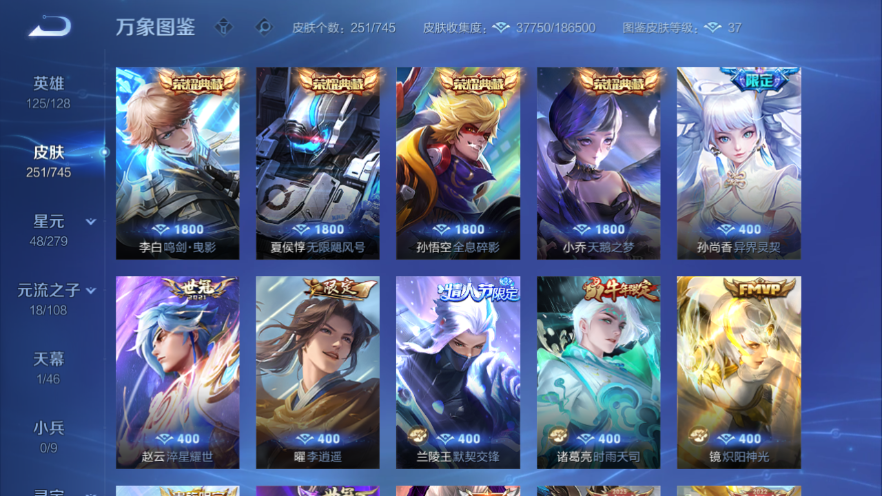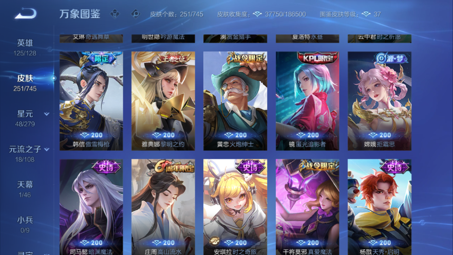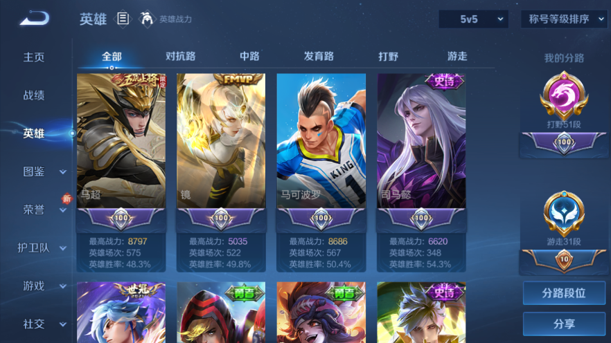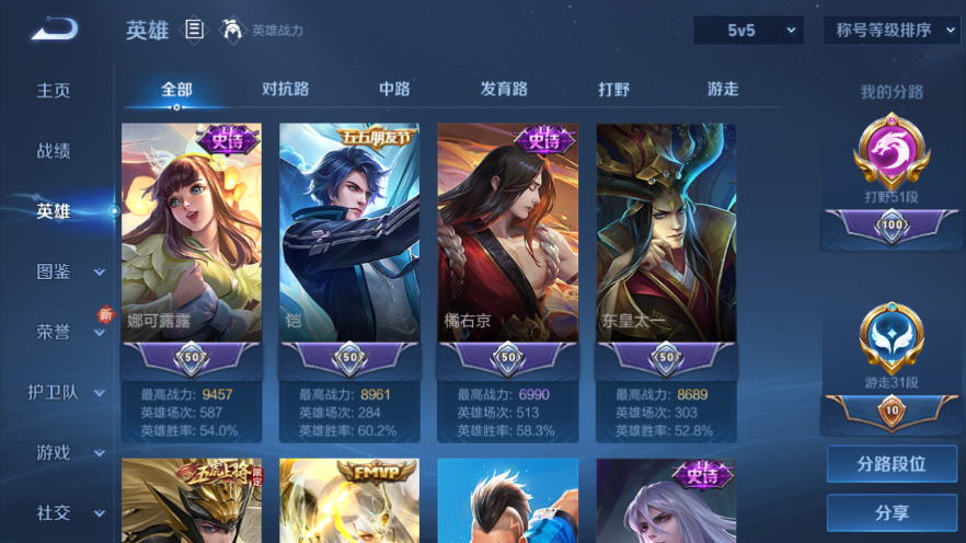 ML09打野51段 2金标 万战艾琳-4典藏-9传说-70史诗 【荣耀典藏】:李白鸣剑曳影,孙悟空全