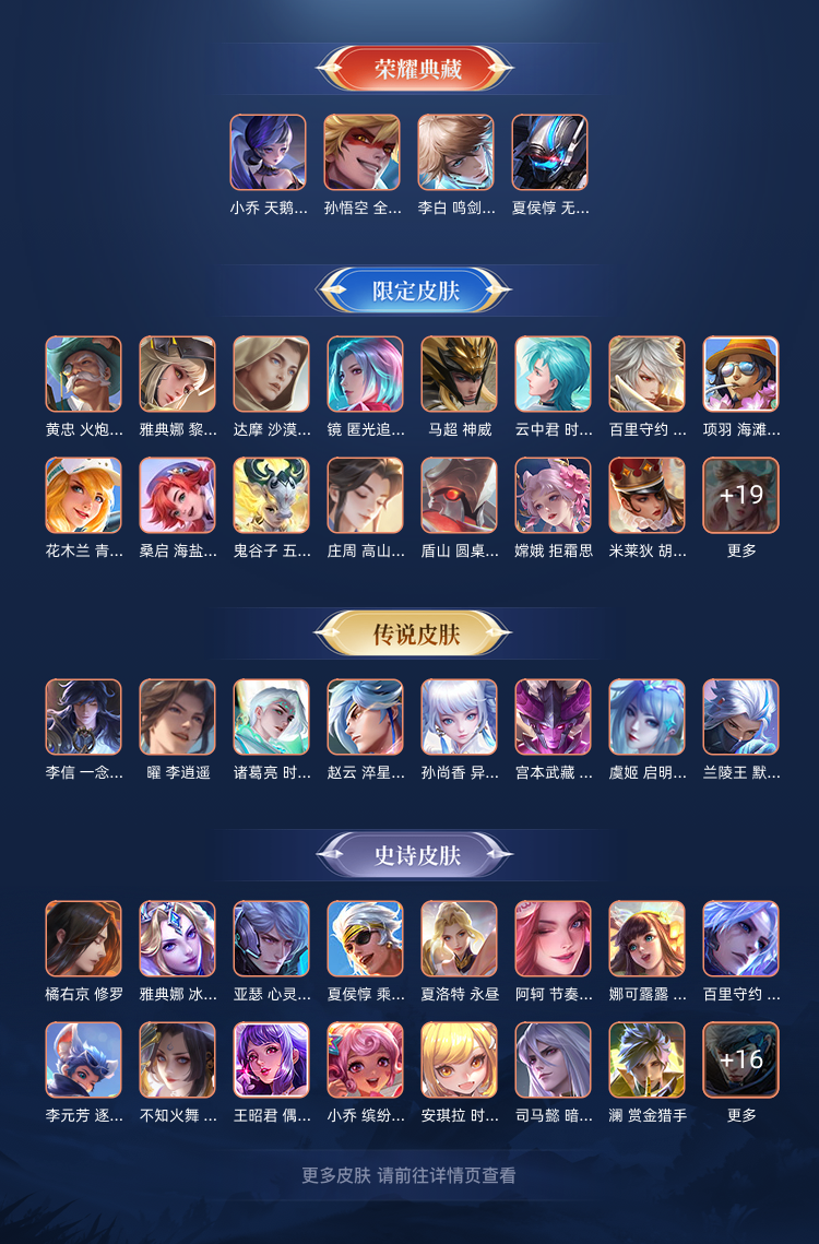 装备描述:ML09打野51段 2金标 万战艾琳-4典藏-9传说-70史诗 【荣耀典藏】:李白鸣剑曳影,孙悟空全息碎影,夏侯惇无限飓风号,小乔天鹅之梦 【传说皮肤】:宫本武藏地狱之眼,镜炽阳神光,兰陵王默契交锋,李信一念神魔,孙尚香异界灵契,曜李逍遥 ,虞姬启明星使,赵云淬星耀世,诸葛亮时雨天司