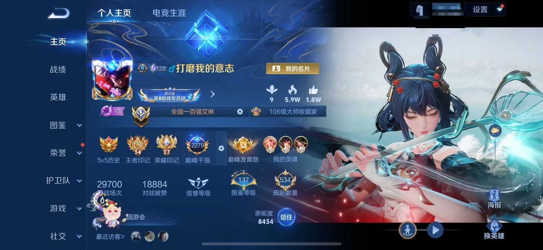 正式服/双小国孙尚香艾琳在榜⭐️巅峰千强290名闪电框⭐️省公孙离虞姬元流在榜⭐️可排位禁巅峰