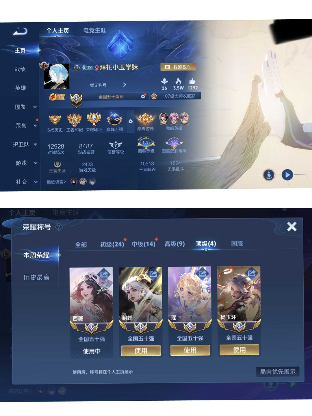 抢先V10十二月在榜四国服瑶国服西施国服貂蝉国服杨玉环❤️白p卡授权s权架巅峰万强框禁巅峰
