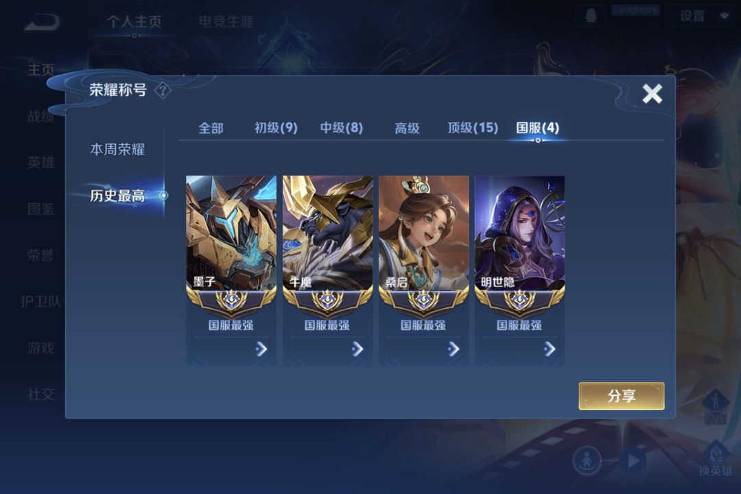 ⛔在榜国服百段游走|①⓶⓪段⛔✨四大国〖墨子|牛魔|桑启|明世隐〗✨①⑦国标✨魔方亮✨国服瑶瑶妹典藏