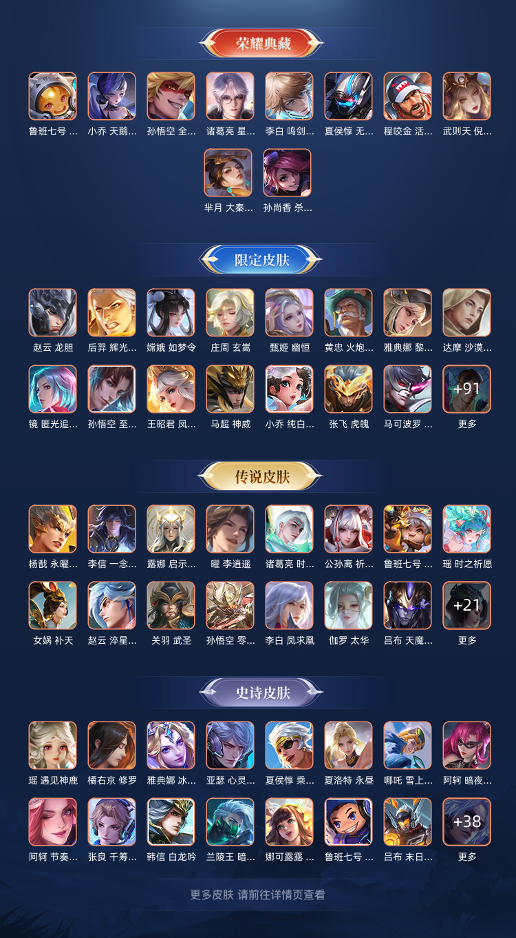 贵族等级V10/10典藏 462 皮/满英雄/敖隐 冰锋战神/天鹅之梦/天魔缭乱/◆◆